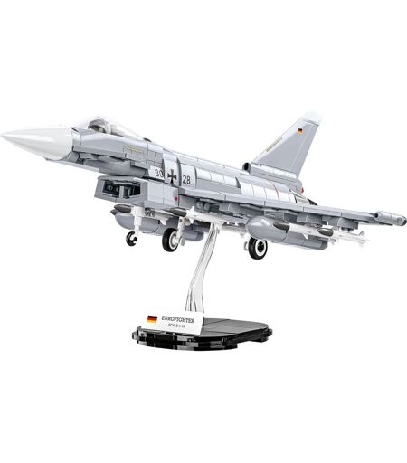 Eurofighter-flyet er en multi-rolle jetjager udviklet af Eurofighter GmbH-konsortiet bestående af Storbritannien, Tyskland, Italien og Spanien. Den blev taget i brug i 2003 og bruges i flere lande rundt om i verden. Eurofighter Typhoon når supersoniske hastigheder og er meget manøvredygtig. Dette ensædede fly er udstyret med avancerede radar- og elektroniksystemer og har evnen til at opdage, spore og angribe luft- og jordmål ved hjælp af missilvåben og bomber, der bæres med. Med 644 COBI-byggeklodser af høj kvalitet skaber dette sæt en Eurofighter-model i det tyske luftvåbens farver. Sættet er designet i skala 1:48 og har hængslet cockpit, bevægelige krængeror og hjul. Chassiset kan nemt fjernes. Puderne har print af høj kvalitet, der ikke slides selv ved intensiv brug. ...