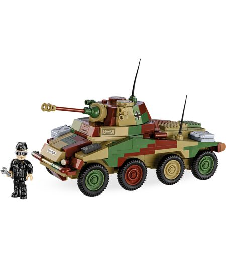 Denne klemklodsmodel af den tyske tunge pansrede bil Sd.Kfz 234/2 PUMA er designet i detaljer i en skala fra 1:35 fra 470 elementer. Køretøjet imponerer med sit meget pæne design, camouflage og aftryk, som gør det til et meget vigtigt objekt i COBI Historical Collection. Der er ingen klistermærker her, vi bruger kun permanente tryk. Køretøjet har bevægelige elementer som hjul, tårn og kanon. Sættet indeholder en figur, der repræsenterer et besætningsmedlem i en pansret bil, samt et skilt med køretøjets navn. Det er et must ikke kun for unge historieinteresserede, men især for voksne samlere og fans af militærteknologi. ...