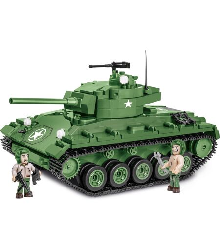 M24 Chaffee er en amerikansk let kampvogn fra Anden Verdenskrig. I årene 1944-1945 blev der produceret 4.731 enheder. En anden let tank M3 / M5 Stuart blev udskiftet med succes. Chaffee var udstyret med svejset panser, to motorer og en 75 mm kanon, som tidligere var blevet udviklet til B-25 Mitchell bombeflyet. Det var den første kampvogn fra de vestallierede, der brugte torsionsstangsophæng. Det skete, at soldaterne åbnede ild mod deres egne kampvogne, fordi Chaffee-chassiset lignede den tyske Panzer II og Panther. Kampvognen blev brugt i kampe i Frankrig, Italien og Det Tredje Rige. Efter krigen forblev han i de amerikanske troppers tjeneste. Det nød stor popularitet og fandt mange købere over hele verden. M24 blev også brugt i Koreakrigen. Kopierne af Frankrig kæmpede i Indokina og Algeriet. De blev brugt af den sydvietnamesiske hær i Vietnamkrigen. Tilsyneladende er de stadig i tjeneste med den uruguayanske hær i dag! Fra 588 COBI byggeklodser kan du bygge en perfekt reproduceret model af M24 Chaffee light tank. Modellen har en arbejdsbane, et roterende tårn og en bevægelig tønde. Der er to dummy-motorer under vedligeholdelseslugen. Tårnet har en luge, der kan åbnes, og et maskingevær. Modellen har permanente print, der ikke slides selv under intens gaming. Sættet indeholder to figurer af amerikanske soldater. Den første karakter er en kampvognskommandør udstyret med en M3 maskinpistol (Lubricator) og kikkert. Han ledsages af en droptank-mekaniker med en skruenøgle. Begge soldater har nye kampvognshovedtelefoner på! ...