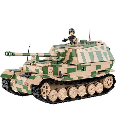 Den første version af den tyske tunge kampvognsdestroyer blev navngivet Ferdinand efter dens designer Ferdinand Porsche. Klemmeklodsmodellen af dette meget berømte køretøj fra Anden Verdenskrig blev designet i en skala på 1:28 fra 1.268 elementer og er 28,5 cm lang. Blokkene og figuren indeholder tryk af høj kvalitet. Modellens funktioner omfatter en aftagelig kopi af motoren lavet af klemklodser, fungerende kædetræk, en kanon, der kan flyttes lodret og vandret, replika indvendige elementer og åbningsluger. Sættet indeholder også en detaljeret figur af køretøjskommandøren med tilbehør som kikkert og hovedtelefoner. Hele sættet suppleres af et skilt med køretøjets navn trykt på. ...
