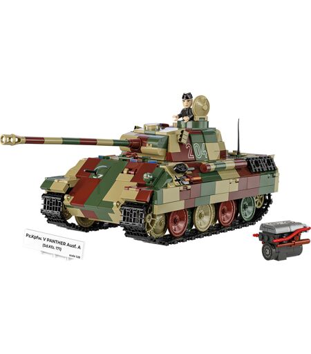 Denne COBI-model viser udseendet af en af de mest berømte kampvogne fra Anden Verdenskrig, Pz.Kpfw. V PANTHER AUSF. A (Sd.Kfz.171) fra Tank Museum i Kłanin. Modellen i skala 1:28 består af 1.152 elementer, der er designet med stor sans for detaljer. "Panther" har bevægelige elementer, såsom et roterende tårn med et bevægeligt pistolløb og roterende hjul med et fungerende kædetræk. Indersiden af tanken er blevet omhyggeligt genskabt. Det aftagelige tårn giver adgang til interiøret, og under servicelugen er der en motorkopi, der kan fjernes og vises ved siden af modellen. Lugerne kan også åbnes for at placere den tilføjede figur indeni. Sættet indeholder en figur af det berømte tankskib Mateusz Deling, kendt fra "Tank Hunter"-programmet. Derudover suppleres sættet med et skilt med modelnavnet. ...
