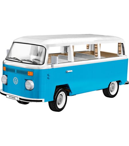 En billegende som et sæt lavet af klemklodser: COBI realiserer denne model af en Volkswagen T2b-bus fra 2366 dele. Modellen overbeviser med den præcise gengivelse af mange detaljer, såsom det klassiske lyseblå og hvide farveskema, typiske spotlights og gardinerne på vinduerne. Modellen i skala 1:12 har også en fungerende skydedør på siden, en motorkopi bagpå, og motorhjelmen, bagklappen og førerdøren kan åbnes. Derudover er der et fungerende styresystem om bord. Den færdige model imponerer med den typiske silhuet af den store original og er omkring 38 centimeter lang. ...
