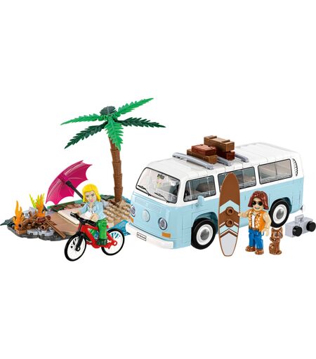Strandfølelse med COBI! Med denne klemklodsmodel af den legendariske Volkswagen T2a stationcar kan bygherrer fra 7 år og derover føle sig som en rejsende i 1970''erne: Sættet indeholder ikke kun stationcaren i klassisk lyseblå og hvid, men også to figurer, en kat og masser af strand- og surftilbehør. Dette skaber et lille stranddiorama med et palmetræ, et bål, surfbræt, parasol og bagage fra 292 stykker. Selv en bygbar model af en stereobåndoptager er inkluderet. Ren retro følelse! ...