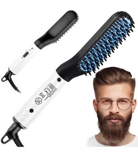 Af hygiejnehensyn er det ikke omfattet af fortrydelsesretten ved brud på forseglingen. Flad børste til skæg og hår Med glattejernet vil du straks kæmpe for et glat og langt skæg, og glemme alt om snoet og sammenfiltret hår for altid. Tekniske specifikationer: Produktkode: 15950 Fremstillet af materialer af høj kvalitet Praktisk at bruge Let Hældning: Keramik Hængende håndtag Hurtig opvarmning 2 forskellige varmetilstande Varmer op til maksimalt 200 ? Strømkabellængde: 120 cm Maks effekt: 35W Spænding: 110-220V 50 / 60Hz Måle: Længde på børste med bøjle: 24 cm Længde på børsten: 21 cm Håndtagslængde: 9 cm Børstens samlede bredde: 5 cm På grund af at producenten pakker farverne tilfældigt i kasserne, sendes farven tilfældigt til kunden. Farve kan ikke vælges, men blandes blandt følgende farver: Guld og Hvid ...