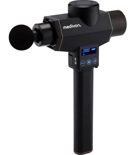 Medivon Massagepistol, sort Gun Bandit tilbyder dig en professionel massage på højeste niveau. Tidligere professionelle terapeuter og atleter havde tillid til, og nu er det tid til dig! Det er den bedste enhed til individualiseret dyb muskelterapi. Den udviklede percussion-teknologi når endda op til 60 % mere dybde. Med en amplitude på op til 16 mm giver den en dyb massage, der genererer varme og lindrer dybtliggende muskelspændinger. Andre producenter overdriver RPM-parametrene for deres enheder, hvilket ikke er sandt. En højere RPM betyder ikke, at enheden fungerer bedre, tværtimod. For den mest effektive massage og hurtigste restitution skal vibrationsområdet være mellem 1750 og 3400 RPM (omdrejninger pr. minut). Kølehovedet er beregnet til aktive mennesker, der søger hurtigere regenerering efter fysisk anstrengelse. Den unikke fyldning af hovedet sænker temperaturen med 5-10 grader, hvilket positivt påvirker restitutionen af muskler efter træning. Gun Bandit forbedrer blodcirkulationen, giver afslappende muskler, hurtigere muskelrestitution, lindrer ubehag efter intens træning og forbedrer bløddelssundheden. Alt dette tilbydes dig af Gun Bandit. Hvordan virker det helt præcist? Ved at trykke på specifikke kropspunkter giver det exceptionel muskelaflastning, lindrer ubehag og reducerer inflammation. De mange udskiftelige hoveder giver mulighed for stort set enhver form for massage med Gun Bandit. At nå dybtliggende triggerpunkter eller en varmende afspændingsmassage er utrolig nemt og kan udføres af alle derhjemme på et øjeblik. Specifikationer: Løsner musklerne op efter træning Til genoptræning efter skader og ulykker Forbedrer blodcirkulationen Stor batterikapacitet 30 hastighedsniveauer fra 400 – 3400 o/min ...