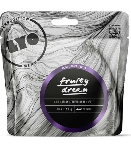 Fruity Dream fra LYOFOOD er en frysetørret bær, der passer godt at tage med, når du er på farten. Posen indeholder frysetørrede æbler, jordbær og kirsebær. LYOFOOD tilbereder maden inden frysetørringen. I LYOFOODs poser er der ingen kunstige tilsætningsstoffer, ingen ekstra sukker, ingen palmeolie og ingen konserveringsmidler! LYOFOODs måltider fremstilles af 100% naturlige ingredienser, og nogle af dem vokser på LYOFOODs egne marker. Alle Lyofoods produkter produceres på deres anlæg i Polen Ingredienser: kirsebærskiver 33,3 %, jordbærterninger 33,3 %, æbleterninger 33,3 %. Næringsværdier Per portion 30g: Kalorier 110kcal Fedt 0,7g (hvoraf mættet fedt 0,1 g) Kulhydrater 22g (hvoraf sukker 19 g) Fiber 4,4 g Protein 1,7 g Salt 0,0 g Kontaktoplysninger LYOFOOD LYOFOOD Sp. z o.o.Zagnańska 97A25-558 KielcePOLEN Tel. +48 534 374 604Tel. +48 883 955 566+48 41 311 11 40 E-MAIL: INFO@LYOFOOD.COM ...