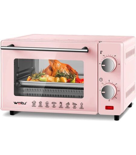 Rootz 10L miniovn - Kompakt elektrisk ovn - Energieffektivt komfur - Ideel til 1-2 personer - 36,5x22,1x28,5 cm - Pink/Rød & Sort/Hvid - 650W