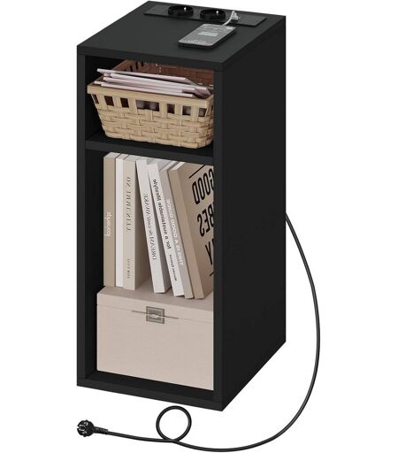 Rootz sengebord med strømstik - Ladestation - Natbord - Åbne hylder - E1 konstrueret træ - 25 cm x 60 cm x 30 cm