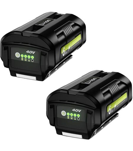 Lithiumbatteri til elværktøj, 40V 6AH, kompatibel med Ryobi, sort, 2 batterier