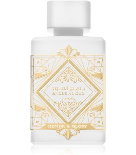 Lattafa Badee Al Oud Honor & Glory, 100 ml, Eaux de Parfum unisex, Indhyld dig i en duft, der vil gøre dig i godt humør hele dagen. Unisex eau de parfumen Lattafa Badee Al Oud Honor & Glory er et udtryk for optimisme og en følelse af fuldkommen lykke. sød duft krydderduft frugtduft en original duft til en original personlighed duft af varme, ideel til koldt vejr ...