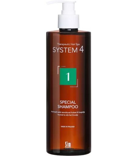 System 4 - 1 Special Shampoo For Normal To Oily Hair er en mild og skånsom shampoo til almindeligt hår, der har behov for en mild shampoo. Den genskaber håret naturlige fugtbalance og afbalancerer hovedbunden. Den fjerner effektivt fedt og skæl, og modvirker irritation, kløe og skæl i hovedbunden, samt problemer med fedtet hår. Denne shampoo gør dit hår sundt og glansfuldt, mens det beskytter hovedbunden. Fordele: Shampoo Udviklet til normalt til fedtet hår Hjælper mod irritation, skæl og kløe Genopretter hovedbundens og hårets naturlige fugtbalance Modvirker fortidligt hårtab Anvendelse: Massér ind i vådt hår og hovedbund Lad sidde i 2-5 minutter Skyl håret og hovedbunden grundigt Anvendes dagligt eller efter behov ...