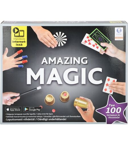 En trollerilåda för barn, med 100 trick och illusioner! Imponerande trolleritrick kan man lära sig på några minuter. Träna och visa upp bländande korttrick, få mynten att bli flera eller trolla fram dem från ingenstans! Föremål försvinner ur dina händer, de dyker upp igen och vissa av dem förvandlas till något annat. Klassiska trick med bollar och bägare och mycket, mycket mer. Innehåller instruktioner till hundra trick och illusioner på svenska, finska, danska och norska. Instruktionsbok 1/2 ingår, del 2/2 finns tillgänglig på nätet. 6+ ...