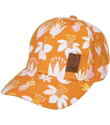 En klassisk kasket med forbuet kant, robust front, broderede ventilationshuller og et justerbart spænde bagpå. Den er varm orange og fuldmønstret med Mumifigurer blandt smukke blomster. Hætten er miljørigtigt lavet af genbrugt, GRS-certificeret polyester. Størrelser: 48/50 og 52/54 cm Farve: Orange Materiale: 100% polyester Håndvask - må ikke tørretumbles, må ikke renses, må ikke stryges ...