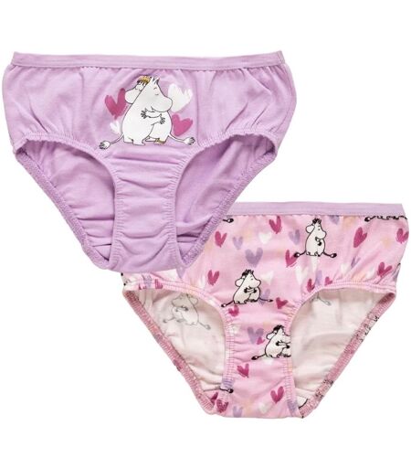 To stykker Mumi-trusser i en blød bomuldsblanding. Den ene trusse er lilla og fuldmønstret med Mumitrollet og Snorkepigen i et hyggeligt kram, mens den anden trusse er ensfarvet med et krambillede foran. Elastikken i taljen er lilla. Øko-tex. Materiale: 95% bomuld 5% elastan 40 °C - Vask med lignende farver, vend vrangen ud før vask, må ikke tørretumbles, stryg vrangsiden ...