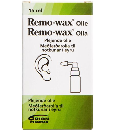 Remo-wax Olie er en plejende olie, der forebygger ørevokspropper i øret. Remo-wax Olie fugter også huden i øregangen og mindsker dermed kløe og irritation forårsaget af tør hud. Bemærkning Brug ikke hvis: Øret er betændt eller gør ondt, der flyder sekret ud af øret, trommehinden er beskadiget, revnet eller er blevet punkteret, du er allergisk overfor et af indholdsstofferne.Bør ikke anvendes til børn under 1 år uden kontakt med læge.Må ikke opbevares ved temperatur over 25 grader.Opbevares utilgængeligt for børn.Må ikke anvendes efter udløbsdato. ...