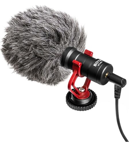 BOYA kondensatormikrofon, 3,5mmBOYA BY-MM1 er en nyreformet (kardioid) mikrofon, der er specielt designet til at forbedre lydkvaliteten i forhold til kameraets indbyggede mikrofoner. En nyreformet mikrofon optager primært lyden fra forsiden. Med både TRS-kabel og TRRS-udgangskabel inkluderet, kan den bruges på smartphones, kameraer, videokameraer, lydoptagere, computere og andre lyd- og videooptagelsesenheder.BOYA BY-MM1 har en kompakt størrelse og let aluminiumsdesign, men bliver ikke en tung byrde under optagelsen. Plug and play design, og ingen grund til at bekymre dig om batteristatus. Det medfølgende anti-shock mount reducerer effektivt uønsket vibration, kabel og håndteringslyd.Anti Shock fæste, kabel, vindhætte af imiteret pels og etui inkluderetSpecifikationer: Type: Kondensator (elektret)Karakteristik: NyreformetFrekvensområde: 35-18KHz +/- 3dBFølsomhed: -42dB +/- 1dB / 0dB = 1V / Pa, 1kHzSignal/støjforhold: 76dB SPLKontakt: 3,5 mm TRS og TRRS tilslutningDimensioner: F22 * 81mmNettovægt: 86gKompatibel med smartphones, DSLR osv. ...