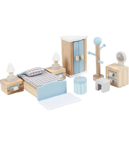 VIGA Dukkehusmøbler til soveværelse Dette møbelsæt fra VIGA er lavet i træ og passer perfekt til ethvert dukkehus. Møbelsættet består af møbler til soveværelset som fx en seng, et klædeskab og sengeborde. Dukkehusmøblerne lægger op til mange timers rolleleg, hvor dit barn får mulighed for at bruge sin fantasi, udtænke hverdagsscenarier og stimulere sin evne til at vise omsorg, når dukkerne leger med hinanden. Specifikationer: Produkttype: Dukkehusmøbler, soveværelse Farve: Natur, blå Indeholder: Seng med pude og dyne, sengeborde, sengelamper, klædeskab, sminkebord, skammel, stumtjener, vasketøjskurv og tæppe Skabe og skuffer kan åbnes Rolleleg og socialt samspil Stimulerer barnets finmotorik og fantasi Styrker barnets evne til empati og omsorg Velegnet til børn fra 3 år Materiale: Træ og tekstil Størrelse: 2 x 2 x 7,5 cm Rolleleg og stimulering af barnets fantasi Disse dukkehusmøbler er fint designet og har mange flotte detaljer, som blot gør legen endnu sjovere. Dit barn kan åbne og lukke skabene, lægge dukkerne til at sove under dynen og lege, at sengelamperne bliver tændt og slukket. Har dit barn flere dukker, kan de sige godnat til hinanden, og måske har dit barn allerede observeret dig gøre dig klar foran et spejl, så dukken nu kan gøre det samme. Kun fantasien sætter grænser. ...