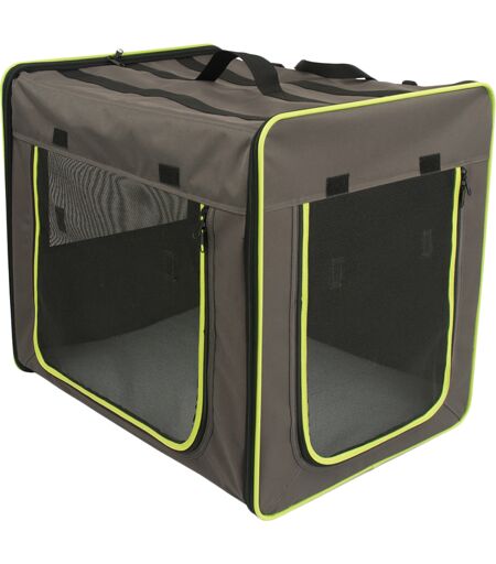 zooplus Exclusive First Class Transportabelt Hundehus Str. L gråbrun / neongrøn B53,5xD79xH66cm