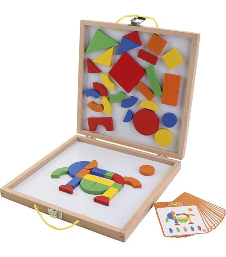 VIGA Magnetisk aktivitetssæt Denne magnetiske kuffert fra VIGA er garanti for mange timers leg, når dit barn skal bygge figurer, dyr eller lignende med de magneter, der er i kufferten. Der medfølger opgavekort, hvor dit barn kan kopiere figurerne på kortet og bygge bestemte dyr eller ting. Men det er lige så sjovt at bygge ting ud fra fantasien. Specifikationer: Produkttype: Magnetisk aktivitetssæt 42 magneter 12 dobbeltsidede opgavekort Kuffert med magnettavler Stimulerer finmotorik og hånd-øje koordination Styrker barnets bevidsthed om former og farver Oplagt til børn fra 3 år Størrelse på kassen: 29 x 30 x 4 cm Finmotorik og hånd-øje koordination Dit barns finmotorik stimuleres, når magneterne skal findes og flyttes, og samtidig stimuleres hånd-øje koordinationen, som er barnets evne til at få øje og hånd til at samarbejde, når der udføres en opgave. Magneterne er i forskellige former og farver, og derfor er det oplagt at snakke om formerne på de enkelte magneter. Måske man kan give barnet til at opgave kun at bygge ting med røde magneter eller bygge et tårn udelukkende af firkanter. ...
