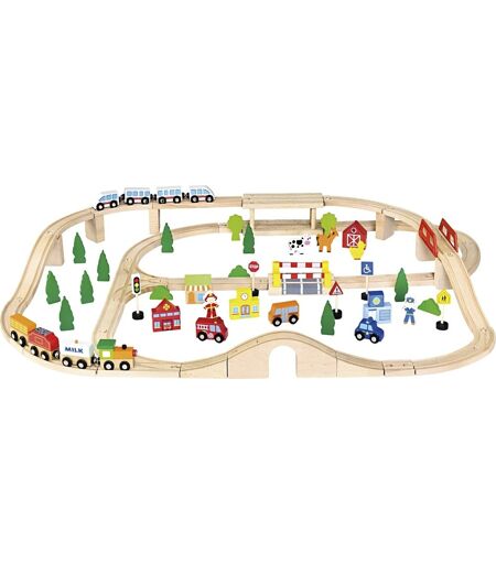 VIGA Stor togbane i træ – 90 dele Denne togbane fra VIGA indeholder alt, dit barn skal bruge for at lave en sjov togbane. Togbanesættet indeholder både skinner, passager- og godstoge, broer, bakker og tilbehør som lyssignaler, bygninger og dyr. Skinnerne samles nemt som et puslespil, og togene kan kobles sammen til et langt tog vha. magneterne på dem. Når dit barn har bygget en bane, kan der laves et flot miljø omkring skinnerne med bygninger, planter og skilte. Specifikationer: Produkttype: Togbanesæt Togbanesæt med toge og tilbehør Magnetisk passager- og godstog Indeholder: Togskinner, broer, bakker, passager- og godstog, planter, trafikskilte, bil, politimand, brandmand, bygninger, bondegård og dyr Byg flotte baner og byer Skinnerne samles som et puslespil Toge kan kombineres vha. magneterne Rolleleg og fantasi Stimulerer finmotorikken og hånd-øje koordinationen Oplagt til børn fra 3 år Materiale: Træ og metal Rolleleg og stimulering af barnets fantasi Denne underholdende togbane indeholder ikke blot skinner og toge, men har også masser af sjovt tilbehør, som gør legen sjovere. Med tilbehøret kan dit barn lave flotte byer, og togene kan flyttes rundt på banen med hænderne, mens barnet siger fut-fut. De medfølgende trafikskilte kan styre trafikken, og I kan have snakke om, hvad de forskellige skilte betyder. Styrk finmotorikken og hånd-øje koordinationen At samle togbanen er ikke bare sjovt, men også afslappende. Togbanesættet kræver koncentration at samle, og banen kan samles på mange forskellige måder. Dit barns finmotorik stimuleres, når skinnerne skal samles og togene køres rundt, og samtidig stimuleres hånd-øje koordinationen, som er barnets evne til at få øje og hånd til at samarbejde, når der udføres en opgave. ...