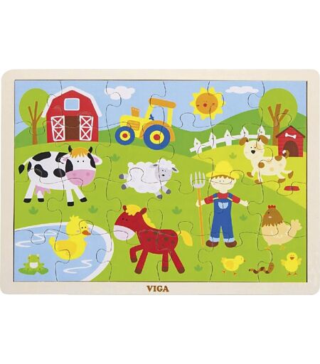 Viga Puslespil I Træ, 24 Brikker, Bondegårdsdyr
