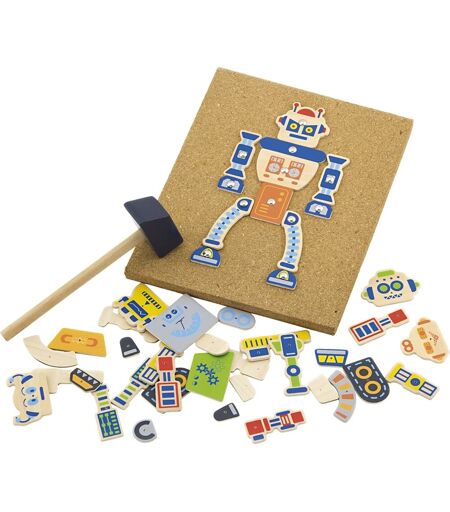 VIGA Hammermosaik med robotter Dette sømbræt fra VIGA fungerer som en hammermosaik, hvor dit barn ved hjælp af brikker og søm kan lave flotte robotter på korkpladen. Der medfølger opgavekort, som man kan følge for at bygge bestemte robotter, eller man kan bygge ud fra fri fantasi. Specifikationer: Produkttype: Hammermosaik Tema: Robotter Indeholder: 45 trædele (brikker), korkplade, hammer, søm og 5 opgavekort Byg robotter på korkpladen vha. brikker, søm og hammer Stimulerer finmotorik og kreativitet Træner iagttagelsesevne og hånd-øje koordination Oplagt til børn fra 3 år Størrelse på brikker: 23 x 18 cm Finmotorik og hånd-øje koordination Et sømbræt kan vække begejstring hos de fleste børn, der elsker at være kreative. Hammermosaikken stimulerer barnets finmotorik og barnets hånd-øje koordination, som er dets evne til at få øje og hånd til at samarbejde, når der udføres en opgave. Dit barn kan følge opgavekortene, der hører med, og herved træne sin evne til at kopiere de brikker, der er afbilledet, eller fantasien kan få frit spil. ...