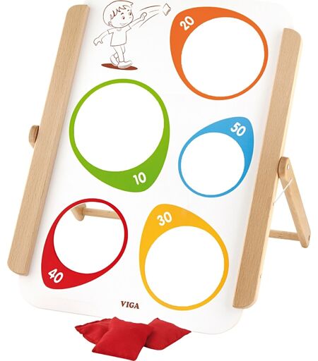VIGA Ærteposespil med 3 ærteposer Dette ærteposespil fra VIGA byder på masser af timers leg, når dit barn skal kaste ærteposerne ned i hullerne på træpladen. Dit barn skal øve sig i at afstandsbedømme kastene og på samme tid kan I øve matematik, når I løbende skal lægge pointene sammen for de kast, der ryger i hullerne. Der medfølger 3 ærteposer, og rammen til spillet kan klappes sammen og nemt ryddes frem og tilbage. Specifikationer: Produkttype: Ærteposespil Der medfølger spilleramme og 3 ærteposer Kast ærteposerne ned i hullerne på træpladen Ud for hvert hul står der pointtal – de øverste huller giver færrest point Stimulerer motorik og afstandsbedømmelse Træner koordination og matematik Både til indendørs og udendørs brug Spillerammen kan klappes sammen og nemt ryddes væk Oplagt til børn fra 2 år Materiale: Træ Størrelse: 34,5 x 44,5 cm Styrker afstandsbedømmelse og matematiske forståelse Ærteposespillet er ikke blot underholdende, men træner også dit barns evne i at afstandsbedømme og koordinere sine kast. Barnet skal finde ud af, hvordan og med hvilken styrke ærteposerne rammer hullerne i træpladen. Undervejs kan I øve jer i at tælle og regne, når pointene fra kastene skal tælles sammen og der skal holdes styr på spildeltagernes score. ...