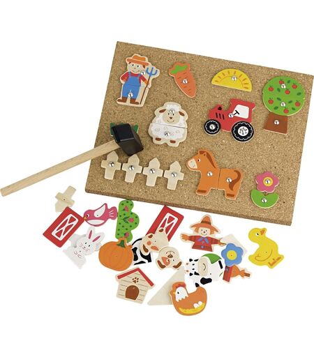 VIGA Hammermosaik med bondegården Dette sømbræt fra VIGA fungerer som en hammermosaik, hvor dit barn ved hjælp af brikker og søm kan lege med bondegårdsfigurer på korkpladen. Der medfølger opgavekort, som man kan følge for at bygge bestemte sammensætninger til bondegården, eller man kan bygge ud fra fri fantasi. Specifikationer: Produkttype: Hammermosaik Tema: Bondegård Indeholder: Trædele (brikker), korkplade, hammer, søm og opgavekort Leg med bondegårdsfigurer på korkpladen vha. brikker, søm og hammer Stimulerer finmotorik og kreativitet Træner iagttagelsesevne og hånd-øje koordination Oplagt til børn fra 3 år Størrelse på brikker: 23 x 18 cm Finmotorik og hånd-øje koordination Et sømbræt kan vække begejstring hos de fleste børn, der elsker at være kreative. Hammermosaikken stimulerer barnets finmotorik og barnets hånd-øje koordination, som er dets evne til at få øje og hånd til at samarbejde, når der udføres en opgave. Dit barn kan følge opgavekortene, der hører med, og herved træne sin evne til at kopiere de brikker, der er afbilledet, eller fantasien kan få frit spil. ...