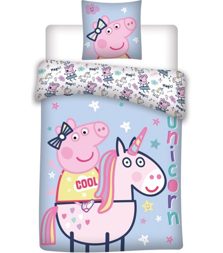 Licens Gurli Gris sengetøj - 150x210 cm - Gurli Gris og enhjørning - Sengesæt med 2 i 1 design - 100% bomuld