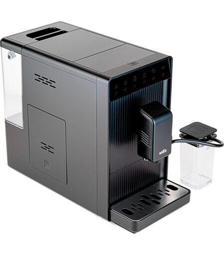 Volo Automatic er en slank og kraftfuld espressomaskine, der leverer den perfekte kop espresso hver gang. Med en varm temperatur, smarte funktioner og en medfølgende mælkebeholder forbedrer Volo Automatic din kaffeoplevelse. Volo Automatic er designet til kaffeelskere, der ønsker at have en brugervenlig og alsidig espressomaskine af høj kvalitet derhjemme. Nyd perfekt espresso, lungo, latte eller cappuccino hurtigt og nemt hver dag. Den leverer kaffe ved en høj temperatur på op til 85 grader, hvilket gør den til en af de hotteste espressoer på markedet. Den høje temperatur hjælper med at udtrække den maksimale aroma fra kaffebønnerne. Med den aftagelige 1,5-liters vandtank kan du nemt genopfylde frisk vand, som er en af de vigtigste ingredienser til virkelig god kaffe. Vandtanken er udstyret med et praktisk håndtag og låg for nem håndtering. Volo Automatic bruger 8-12 gram kaffebønner pr. espresso, afhængigt af den anvendte kaffe, hvilket sikrer en rigere og mere intens smag. Med mere kaffe pr. shot får du en stærkere og mere aromatisk espresso. Kaffebønnebeholderen på 150 gram med silikonering for at reducere luftkontakt sikrer, at Volo Automatic altid tilbereder frisk kaffe. ...