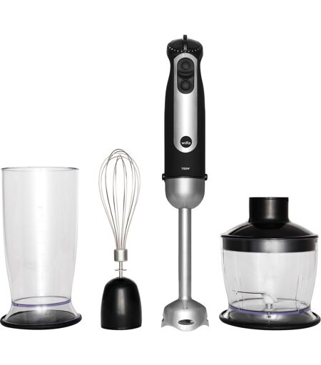 Wilfas Essential Power SM-1000FP stavblender er ideel til tilberedning af dips, saucer, supper, mayonnaise og babymad samt blanding og tilberedning af milkshakes. Den medfølgende hakker er perfekt til hård mad, hakning af kød, ost, løg, krydderurter, hvidløg, gulerødder, valnødder, mandler, svesker og lignende. Takket være den trinløse trykafbryder til hastighedsregulering kan den rigtige hastighed altid indstilles til den respektive mad. ...