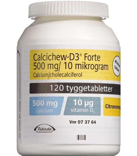Takeda pharma a/s Calcichew-D3 Forte 500 mg+10 mikrogram 120 stk Tyggetabletter