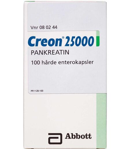 Creon anvendes ved sygdomme i bugspytkirtlen, hvor det efter indtagelse vil virke ved at spalte fedt, protein og kulhydrater til mindre dele, som kroppen kan optage. Creon 25.000 ...