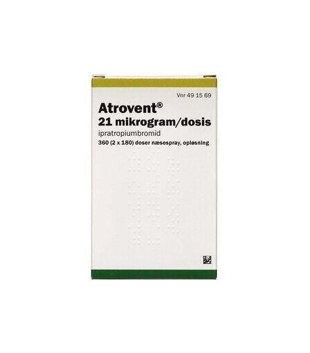 Atrovent næsespray anvendes til voksne for at mindske mængden af vandigt sekret ved allergisk snue (som f.eks. skyldes pollen) eller ved ikke-allergisk løbende næse (som kan udløses af f.eks. temperaturforandringer eller lokalirritation) Atrovent næsespray virker ved at hæmmer dannelsen af vandigt sekret i næsens slimhinder. Atrovent næsespray begynder at virke inden for 15 minutter. Atrovent næsespray bør ikke gives til børn under 18 år uden lægens anvisning. I pakningerne med medicin findes en patientvejledning, som du altid bør læse grundigt, inden du tager medicinen. Hvis du er i tvivl, om du må bruge medicinen, bør du kontakte egen læge. ...