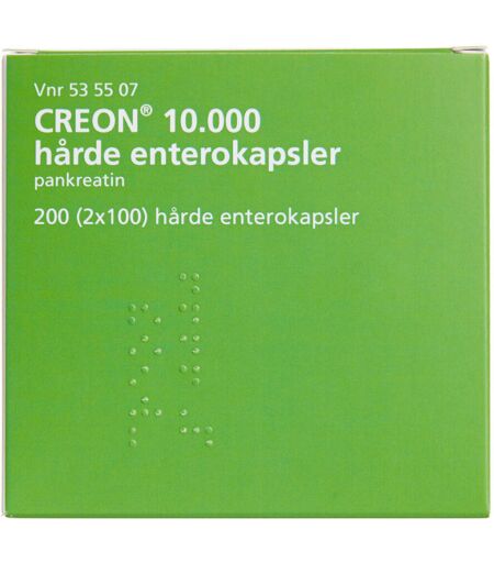 Creon anvendes ved sygdomme i bugspytkirtlen hvor det efter indtagelse vil virke ved at spalte fedt, protein og kulhydrater til mindre dele, som kroppen kan optage. Creon 10.000 ...