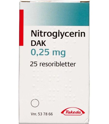 Takeda pharma a/s Nitroglycerin "DAK" 0,25 mg 25 stk Resoribletter, sublinguale