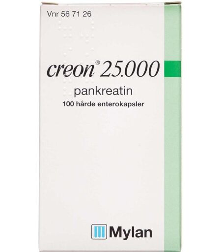 Creon anvendes ved sygdomme i bugspytkirtlen, hvor det efter indtagelse vil virke ved at spalte fedt, protein og kulhydrater til mindre dele, som kroppen kan optage. Creon 25.000 ...