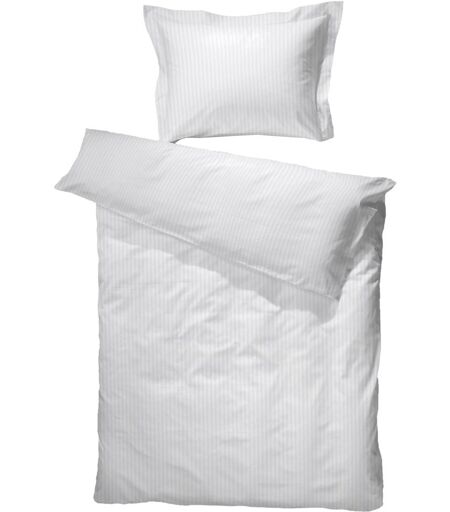 Dynebetræk: 70x100 cm - baby sengesæt Pudebetræk: 40x45 cm Materiale: 100% egyptisk bomuldssatin Vævning: Ekstra fin 230TC jacquardvævet (Thread count = antal tråde pr. kvadrattomme) Farve: Hvid Design: Turistripa - Smalle indvævede striber Brand: Turiform Lukning: Dyne- og pudebetræk lukkes med overlap Vask: 60° Tørretumbling: Ja Tåler strygning: Ja Certificering: STANDARD 100 by OEKO-TEX® (10.HPK.76221). Din garanti for at produktet er fri for sundhedsskadelig kemi. Blødt baby sengetøj, produceret i 100% egyptisk bomuldssatin med fine jacquardvævede striber. Et sengesæt til baby, som ikke kun føles dejlig blødt og behageligt for dit barn, men som også har fokus på kvalitets materialer. Den fine vævemetode giver baby sengesættet en flot stribet struktur, selvom sengetøjet stadig er flot ensfarvet. Dette baby sengesæt fra det anerkendte mærke Turiform er produceret i den lækreste bløde 100% egyptiske bomuldssatin. Det egyptiske bomuldssatin giver sengetøjet dens elegante glans. Baby sengetøjet kombinerer et enkelt og flot design, som passer til de fleste børneværelser, med materialer som skaber en følelse af luksus. Baby sættet her byder også høj åndbarhed og god absorberingsevne, hvilket gør en væsentlig forskel under søvn, især hos børn. Baby sengetøjet passer til en almindelig babydyne størrelse og kan bruges i sengen, i babynesten, i barnevognen eller hvor end dynen medtages. Babydynen er ofte fast omkring barnet i mange af døgnets timer, da den skaber stor ro, genkendelighed, tryghed og varme for babyen - ikke kun den første tid, men ofte op til 2-3 års alderen. Det bruges derfor rigtig meget og bliver vasket ofte, og derfor ønsker de fleste også blødt sengetøj i bomuld af høj kvalitet.Se også vores store udvalg af flot og stilfuldt baby tilbehør her Vi anbefaler at man har mere end et sæt sengetøj til baby. Med en lille baby sker der ofte uheld, af flere arter. Det er derfor dejligt at have et ekstra sæt liggende, lige til at skifte når uheldet sker. De fleste mødre oplever at 3-4 sæt baby sengetøj er rart at have i skabet. Det samme gælder baby lagner, både til barnevogn og babysengen. Herudover kan det være rigtig rart at have en ekstra babydyne liggende, da disse ofte er lidt længere tid om at tørre. På denne måde kan du være sikker på dit barn ikke mangler sengelinned, når der skal vaskes eller klokken er sent om natten. Du finder vores sortiment af kvalitets lagner her til børn her Helhed, enkelthed og kvalitet - Så hedder mærket Turiform. Turiform blev skabt og designet af nordmanden Turi Tobiassen, der ligeledes er uddannet tekstildesigner. Turi Tobiassens kunstneriske baggrund kommer til udtryk, i de mange flotte farver og prints som du finder på Turiforms sengetøj. ...