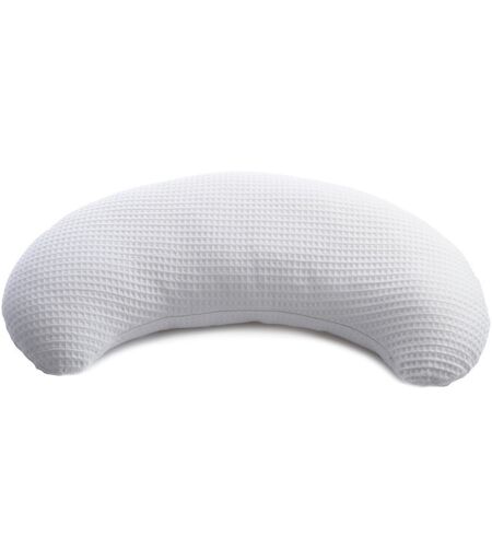Størrelse: 90x60x18 cm Materiale: 100% bomuld Farve/Motiv: Hvid med flot vaflet vævning Design: Turiform - Moa Betræk: Aftageligt og vaskbar Fyld: Fleksibelt fiberfyld Vask: 60° Tørring: Kan tumbles ved lav temperatur - Anbefaler lufttørring Certificering: STANDARD 100 by OEKO-TEX® Ammepude fra Turiform med et flot hvidt betræk. Betrækket er produceret i 100% bomuld og har en let vaflet struktur i vævningen. En lille baby spiser mange gange i døgnet og de første måneder af barnets levetid, kræver det både tid og tålmodighed fra den nybagte mor, derfor er det også utrolig vigtigt at amningen foregår så komfortabelt som overhovedet mulig. En ammepude er en blød og behagelig pude der støtter både mor og barn under amningen. Ammepudens fleksible fyld hjælper med til at opretholde en god og komfortabel ammestilling for både mor og baby. Ved anvendelse af puden sikres det samtidig, at baby kan ligger trygt og godt ind mod mor. Endnu en fordel ved en ammepude er, at mor har mulighed for at have begge arme fri når den lille spiser. Se øvrige baby og børne artikler her Helhed, enkelthed og kvalitet - Så hedder mærket Turiform. Turiform blev skabt og designet af nordmanden Turi Tobiassen, der ligeledes er uddannet tekstildesigner. Turi Tobiassens kunstneriske baggrund kommer til udtryk, i de mange flotte farver og prints som du finder på Turiforms produkter. ...
