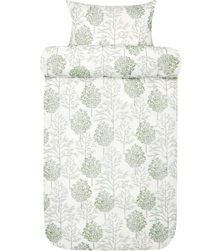 Flonel sengetøj 140x200 cm - Hvidt sengesæt med grønne træer - 100% bomulds flonel - Thea Høie of Scandinavia sengelinned