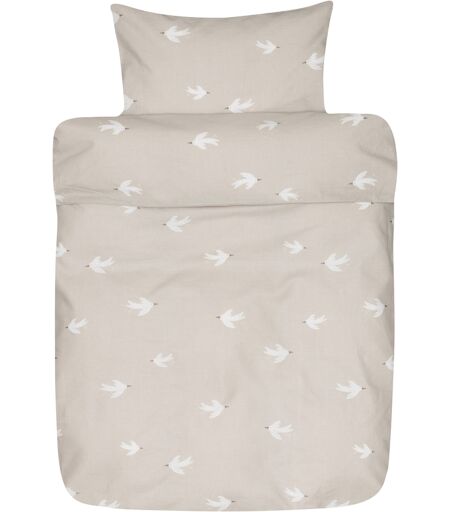 Høie Of Scandinavia Bomulds sengetøj - Beige sengesæt med fugle i 100% ekstra fin bomuld - 140x200 cm - Fina - sengelinned