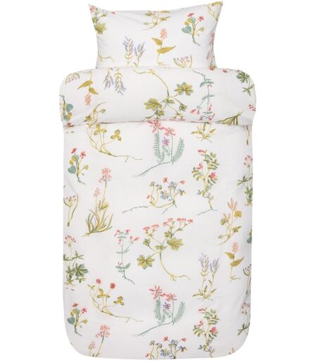 Høie Of Scandinavia Vævet krepp sengetøj 140x220 cm - Hvidt sengesæt med blomster - 100% blød bomuld - Bæk og bølge sengelinned - Fiona