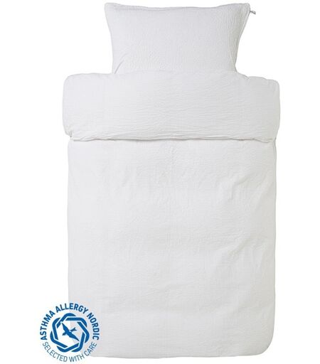 Vævet krepp sengetøj - 140x220 cm - Allergivenligt hvid krepp sengesæt i 100% bomuld - Høie of scandinavia pure white