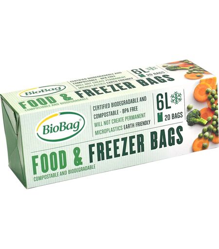 BioBag Fryseposer Biobas. M/skrivefelt 6l, 24x50cm, 20 Ps