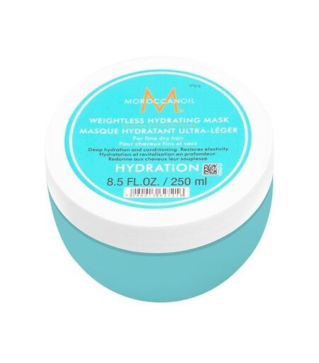 En fugtgivende maske i en let formel, som plejer fint og tørt hår ved hjælp af bl.a. nærende arganolie. Moroccanoil Weightless Hydrating Mask genopbygger hårets elasticitet og tilfører ekstra pleje og intens fugt på blot 5 minutter. ...
