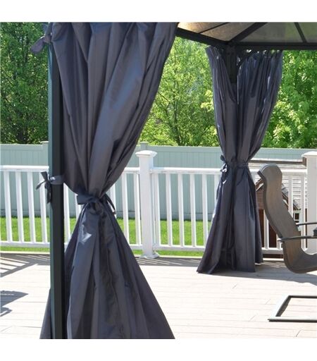 Palram Canopia gardinsæt til havepavillonPavillongardiner fra Palram - Canopia er enkle og funktionelle. De er designet så de passer til Martinique 4300 havepavillonen fra Palram - Canopia. Gardinerne glider let i skinnerne og kan lynes op i midten, for at værne om privatlivet. Der er anvendt en høj kvalitet af polyester til produktionen af dette gardin. Der er ingen vedligeholdelse. Gardinet dækker alle 4 sider af pavillonen.Materiale: PolyesterFarve: GråKroge medfølgerUV-resistentKan maskinvaskes i koldt vand. Ingen klor eller blegemiddel.Dimensioner opstillet (HxB): 217 x 420 cm ...