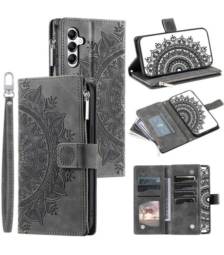 Til Samsung Galaxy A56 tegnebogscover Cover Shell Mandala Blomstermønster - Grå
