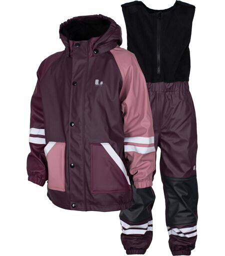 Lindberg Kids' Fagerhult Rain Set Fleece Plum/dry Rose, 100