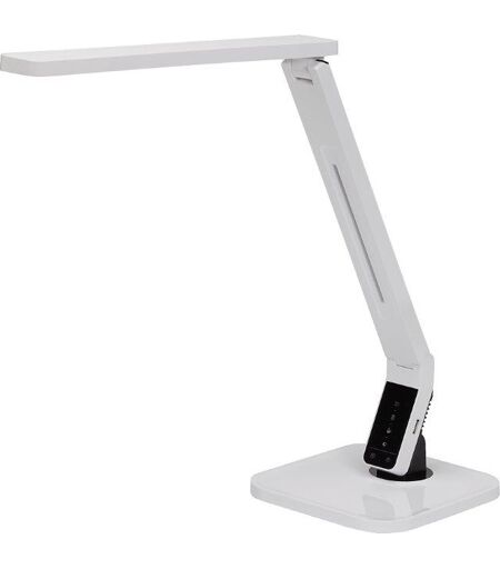 Bordlampe i et stramt moderne design.LED-bordlampen er en effektiv bordlampe med lysdæmpefunktion og mulighed for justerer både farvetemperatur og lysstyrke alt efter behov. Samtidig har lampen har ægte farvegengivelse og blænder ikke. Lampen fylder ikke meget på skrivebordet, da armen let kan foldes sammen. Dertil er den udstyret med et display med touch funktioner, timer og USB-port. Da LED lampen har en lang levetid, er den et godt alternativ til miljøvenlig belysning til kontoret.Farve: Hvid Materiale: Miljøvenligt ABS, aluminium og metalLængde på armen: 780 mmStørrelse fod: 170 x 180 mmBrændetimer: 50.000 timerLyskilde: 9 watt LED med justerbar LUX (+/- 100L/600L750L/900L/1000L/1100L)Farvetemperatur, Kelvin: 2500-3000K, 2500-3300K, 4300-5300K, 6000-7000Udstyr: Display, On/Off timer-funktion (60 min), USB-port ...