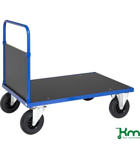 Lagervogn 330 500 kg lasteevne og let at manøvrere Specifikationer: Blålakeret stål med slidstærk overflade i laminat Rengøringsvenlig 2 faste og 2 drejelige hjul 200x50 mm massive hjul Lastekapacitet: 500 kg Mål i cm (LxBxH): 100x70x90 Højde gavl: 40 cm Vægt: 26 kg ...